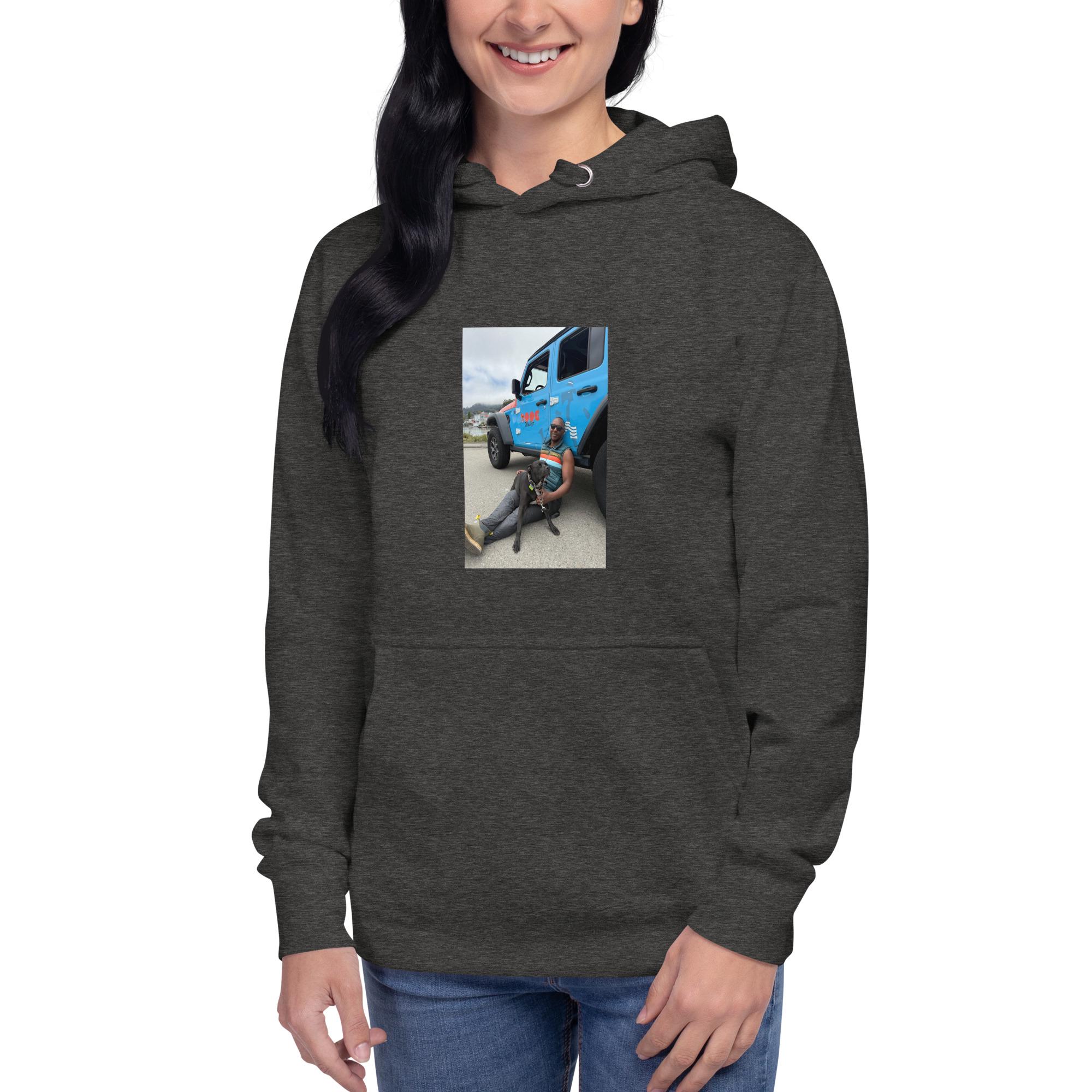 Dog Walker Hoodie: Blue Jeep, Staffordshire Terrier, Animal Lover Slogan by the Doog Walker