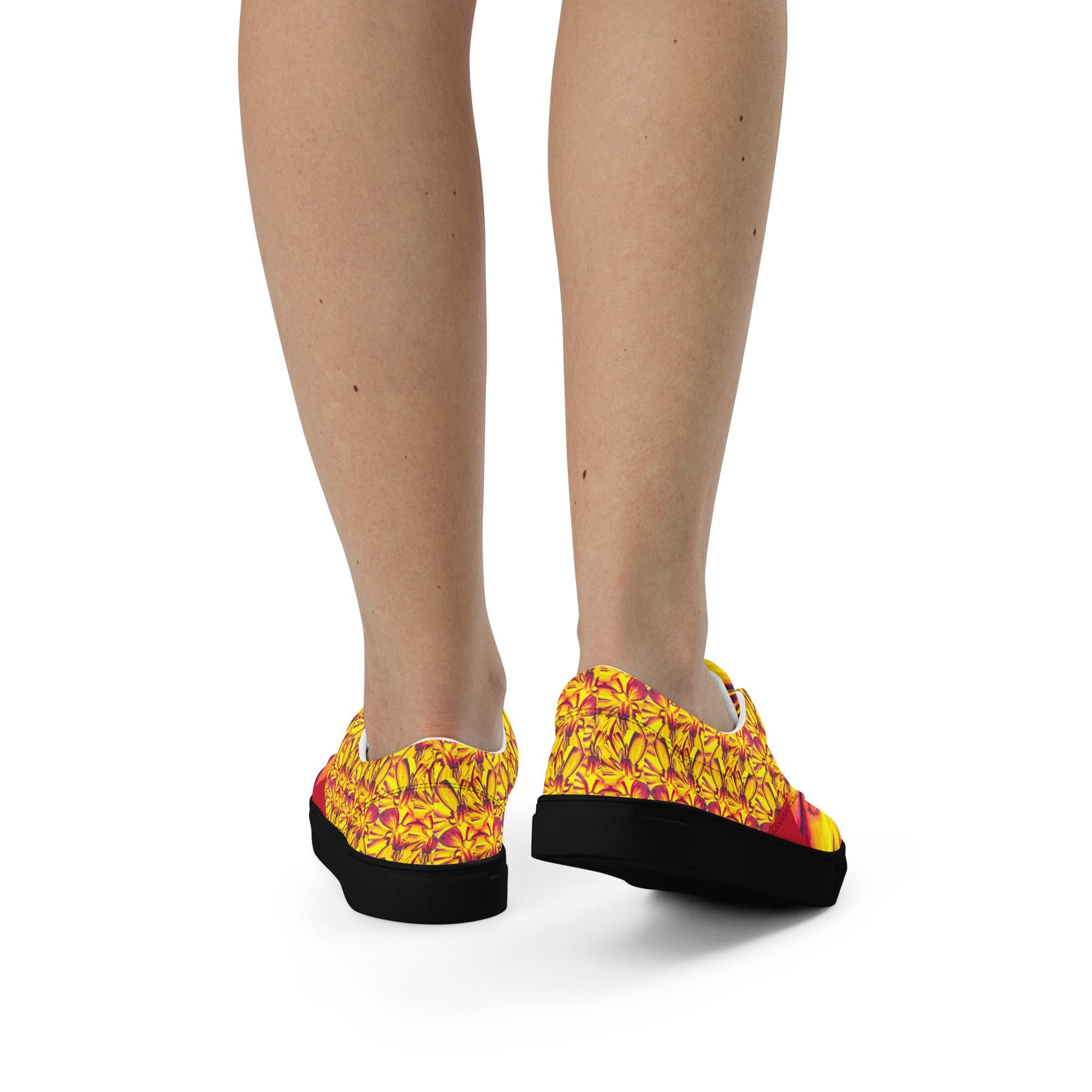 Yellow and Red Chrysanthemum Flower Women’s lace-up canvas shoes Oil Painting
