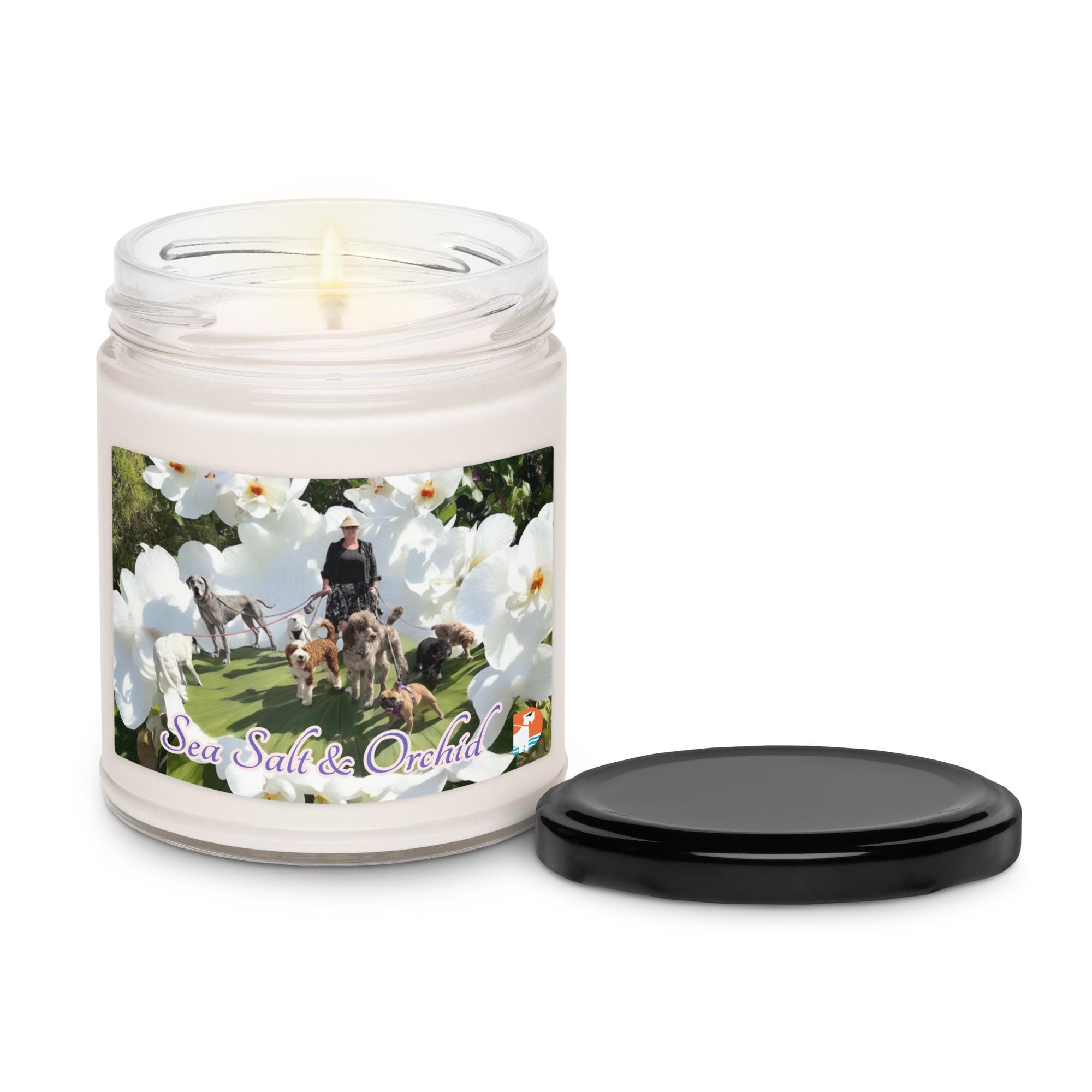 Give the gift of The Doog Walker this holiday season with this delightful sea salt and orchid scented candle with an image of dog's dogs walking through an imagined orchid fantasy. It will be the delight of anyone who receives it!